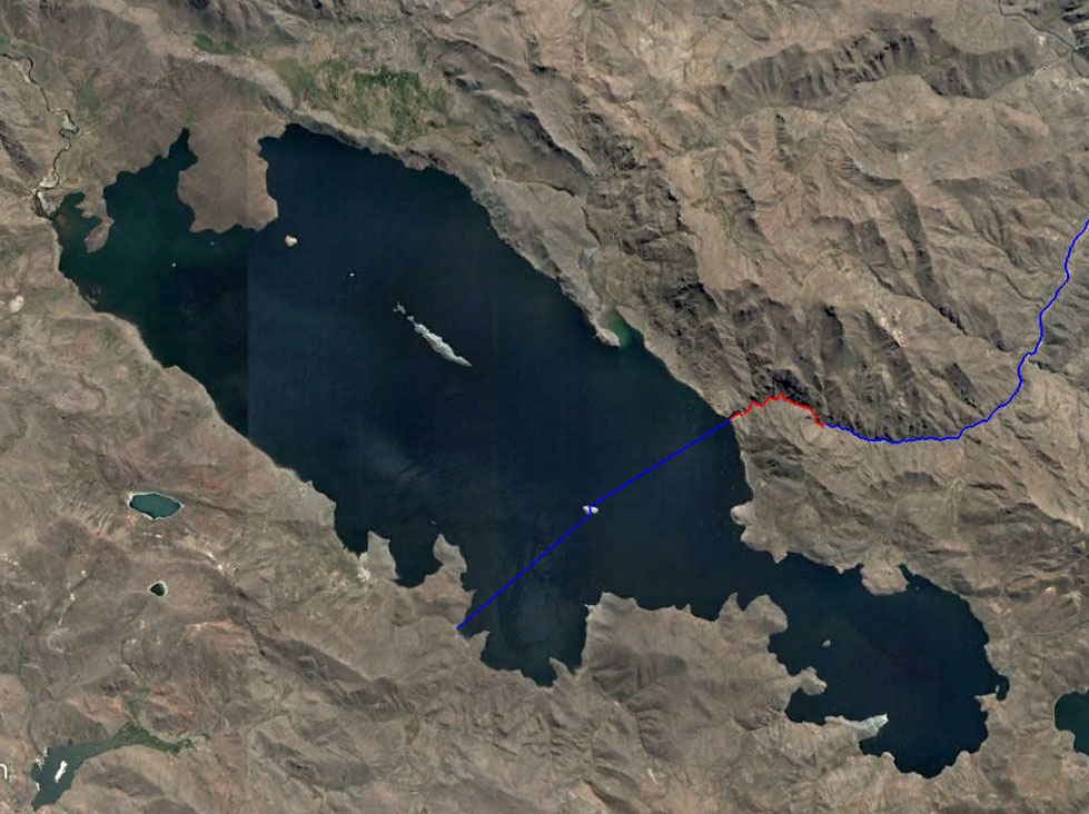 In the morning we'll cross another 1 mile to the northeast and pack up our boats to explore Sillustani. I can prearrange to have a guide from Puno meet us here for a guided tour followed by transportation 12.6 miles to Lake Titicaca. Since our Lake Titicaca journey will consist of about 14 miles of flatwater paddling / sailing I would suggest we call it an early day and camp at our put-in location and canal entrance to the lake.