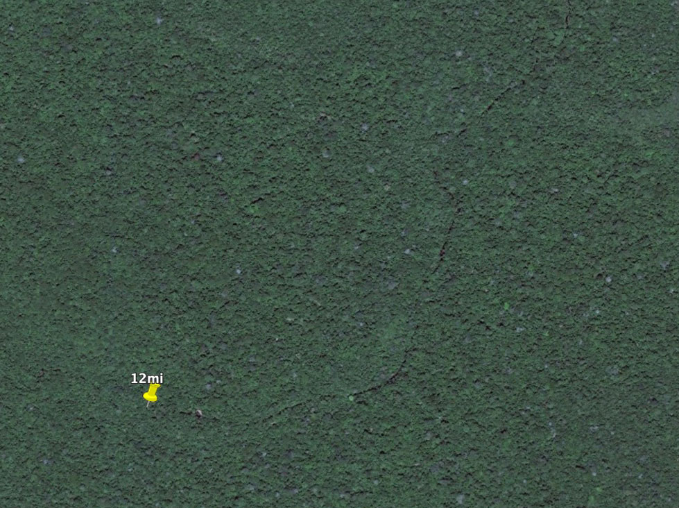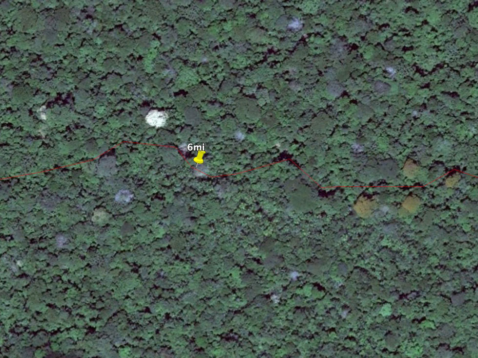 The rate we will move will depend mostly on the trees which can provide shade in primary forest systems. The less light to hit the forest floor, the easier it will be. Many times runoff can create trails which are far more easier to follow than having to dodge vegetation while maintaining a heading. In fact, that's what it looks like here. As soon as 1 mile in we have a visible break in the canopy and very possibly a a runoff trail to follow and this would be in accordance with an elevation graph of the proposed track. At 2 miles to 3 the trail becomes slightly more prominent until about 4 miles in where we begin to see wider and darker gaps about 25-30 ft in width proving there to be at least sections of water whether flowing, connecting or not. We will have to walk anywhere from 6 to 10 mi before we reach navigable water and without the need for continuous portages. This will depend on the month of the year (April/May) and is best just after the rainy season has ended and creeks are full. Hiking through jungle is no easy task and previous similar experience is highly recommended. The goal is to reach the creek by foot where packrafts will begin to work and the result will be a 15mi canal paddle under dense canopy, shade and isolated wildlife. We will decide as a group on a turning back point if need be and according to the difficulty of the terrain. Worst case scenario is that is becomes impossible in which case we can walk a few miles to either the Madre de Dios or Inambari rivers for packrafting to Laberinto or further down to Puerto Maldonado.