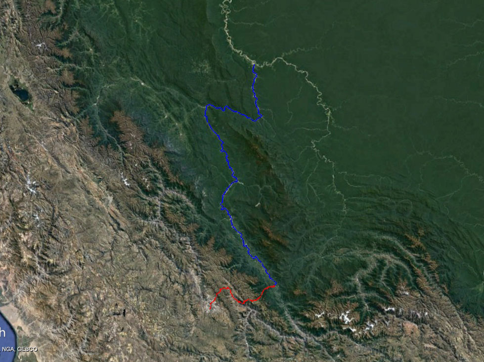 We'll raft down shallow but swift class 2 - 3 for the next 2 weeks and another 238 miles until we reach the town of Atalaya and confluence with the Urubamba river (Sacred Valley and Machu Picchu river). Along the way we'll pass through 1000's of plantations, and experience a change of subtropical to tropical climate. We'll raft anywhere from 25-35 miles per day with river speed averages from 5-8 mph. The river moves but doesn't show whitewater, and it meanders but does not turn back on itself likelike it does in lower jungle. We would be best off to bring both hammocks and tents as the upper section will have less trees while the lower will be thicker with less beaches. Along the way we will pass through agricultural towns such as Pichari, Llochegua, Mayapo, Esmeralda, Puerto Rico and Anapati. After about 109 mi down we near the end of agricultural areas and enter the tropical climate of Otishi National Park with mountain ranges to to both the east and west. We have the option here to take a break from the river and trek up to one of a few waterfalls such as the "Cascada Parijaro" or "Cataratas Las Tres Hermanas". Continuing to raft down it becomes more lush as we pass by the local communities of Cutivireni, Puerto Bolgnesi, Catshingari, Quiteni, Potsateni until we reach Remolinos and confluence with the Perene river. Here, we have an out if time is short as we are near a highway which can take us to Mazamari and eventually back to Ayacucho. Here at Remolinos the river takes a hard right turn at 180mi then turns back north at 228mi at the native community of Poyeni. For the next 44 miles we have options to trek up creeks to waterfalls s we float by the communities of Mayapo, Charahuaja, Maranquiari and Ratery until we reach Atalaya where the Urubamba river dumps into the Apurimac to form the new Ucayali river. From Atalaya it's a few hrs drive back to Huancayo, then Ayacucho then an overnight on a comfortable tour bus back to Cusco. Atalaya also has an airstrip and flights to Lima run twice a week on Tues and Fri in the afternoon.